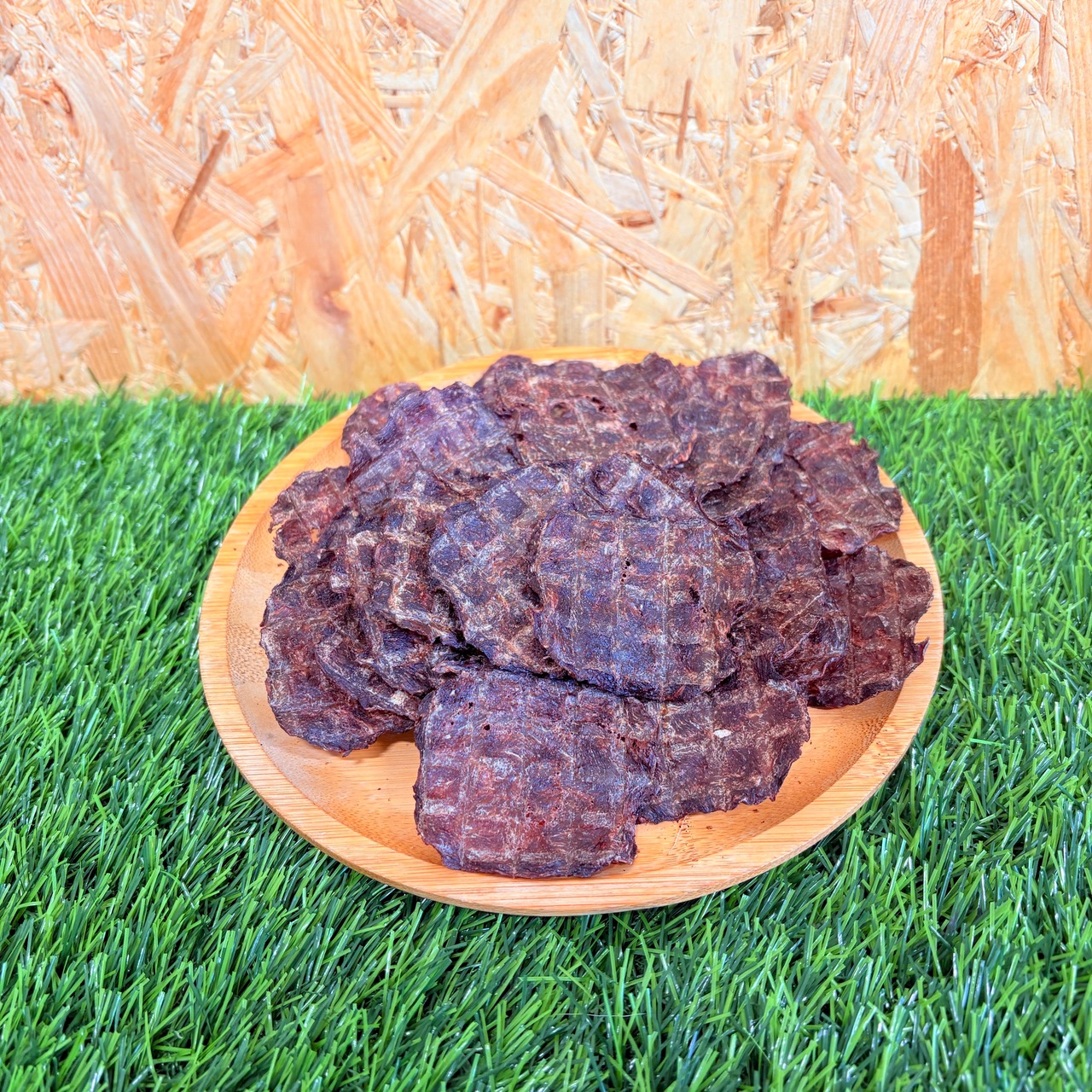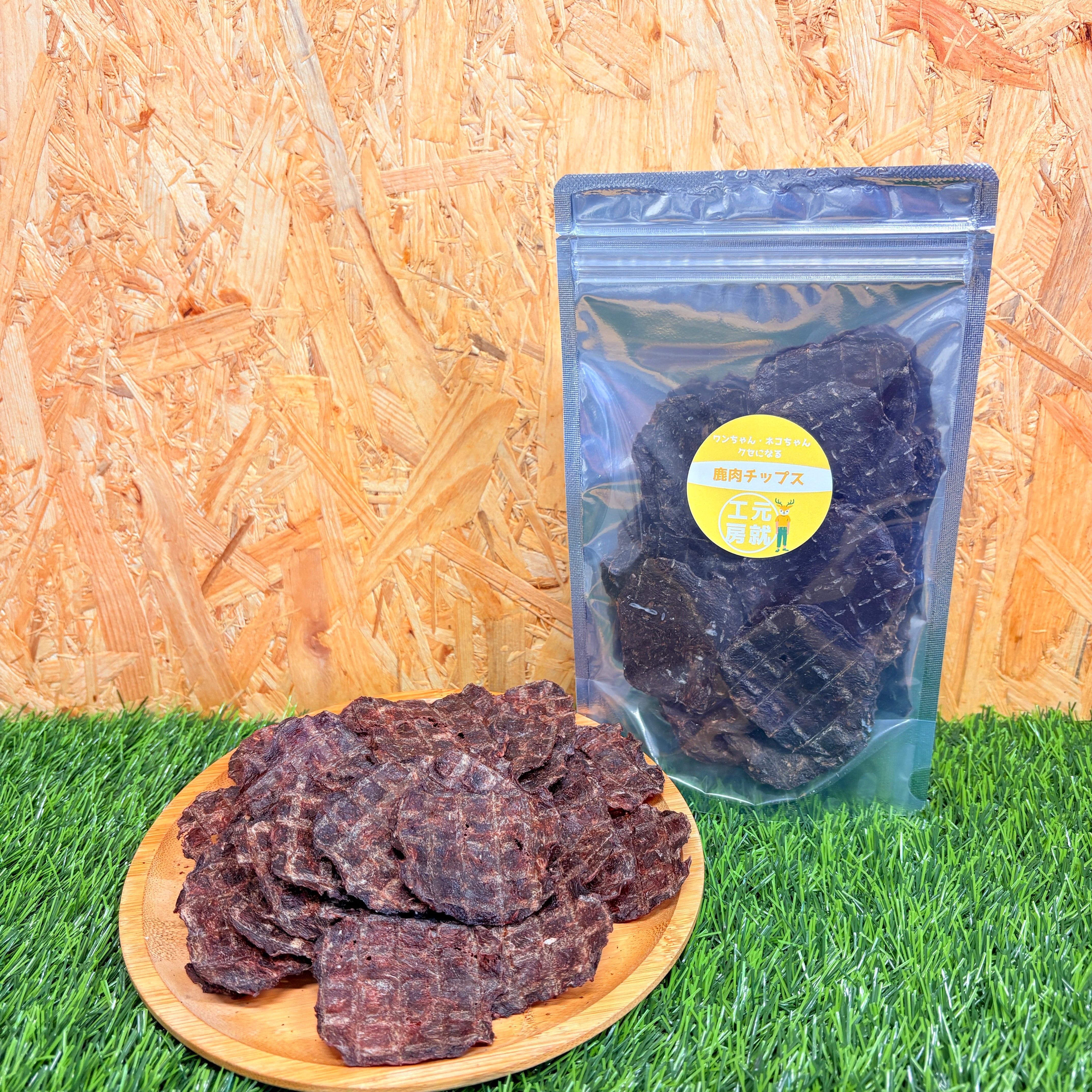ジューシーで風味豊かな鹿肉の味わいを手軽に楽しめる鹿肉チップスです。ミンチ状にした鹿肉を薄く加工し、香ばしく仕上げました。硬めなのに割りやすいので、ワンちゃん・ネコちゃんに与えやすくなっています。