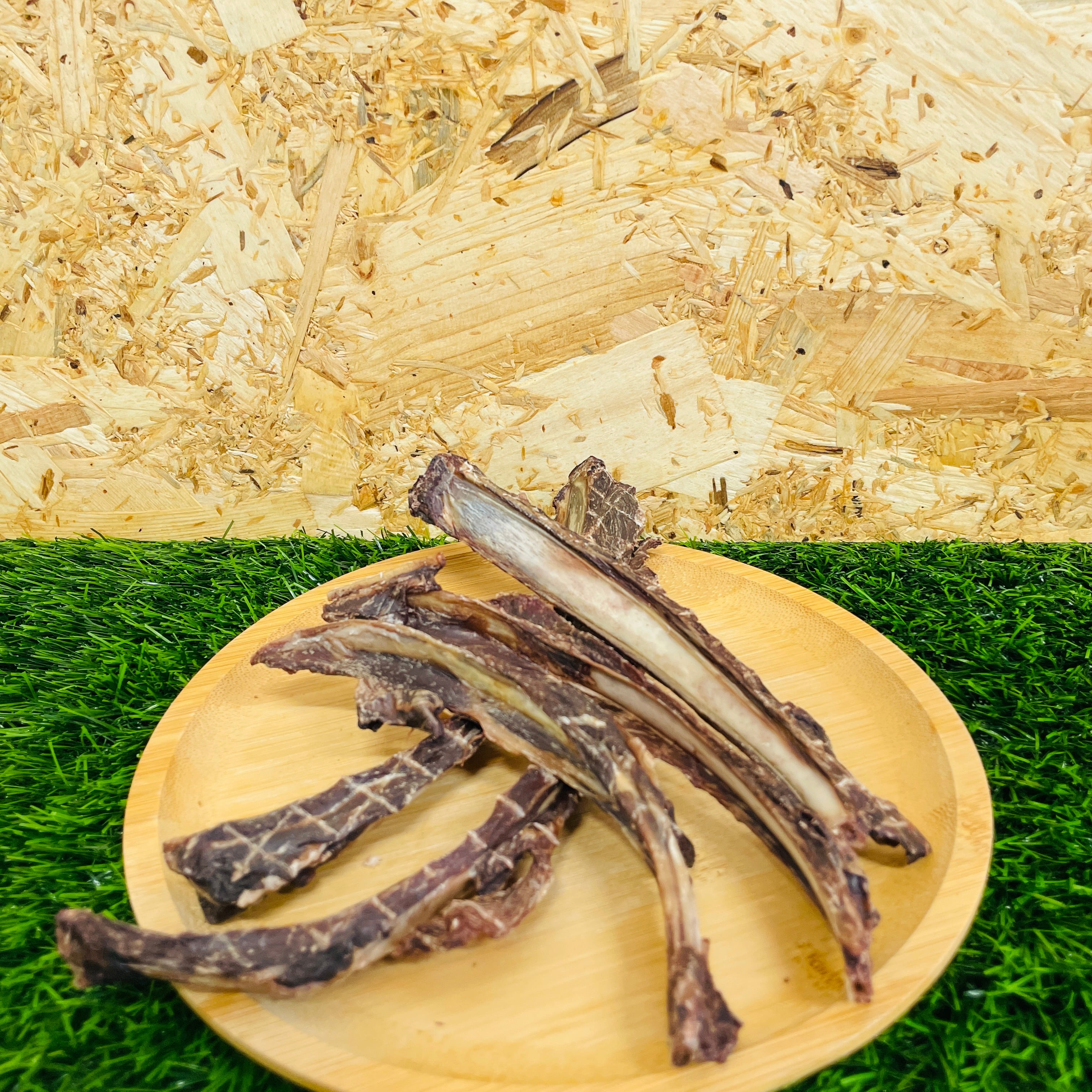 ※与えすぎにはご注意ください。食べた後は水を飲ませてあげてください。鹿のあばら骨は噛んだ後細かく破片になりますので、事故防止のため様子を見ながら与えてください。